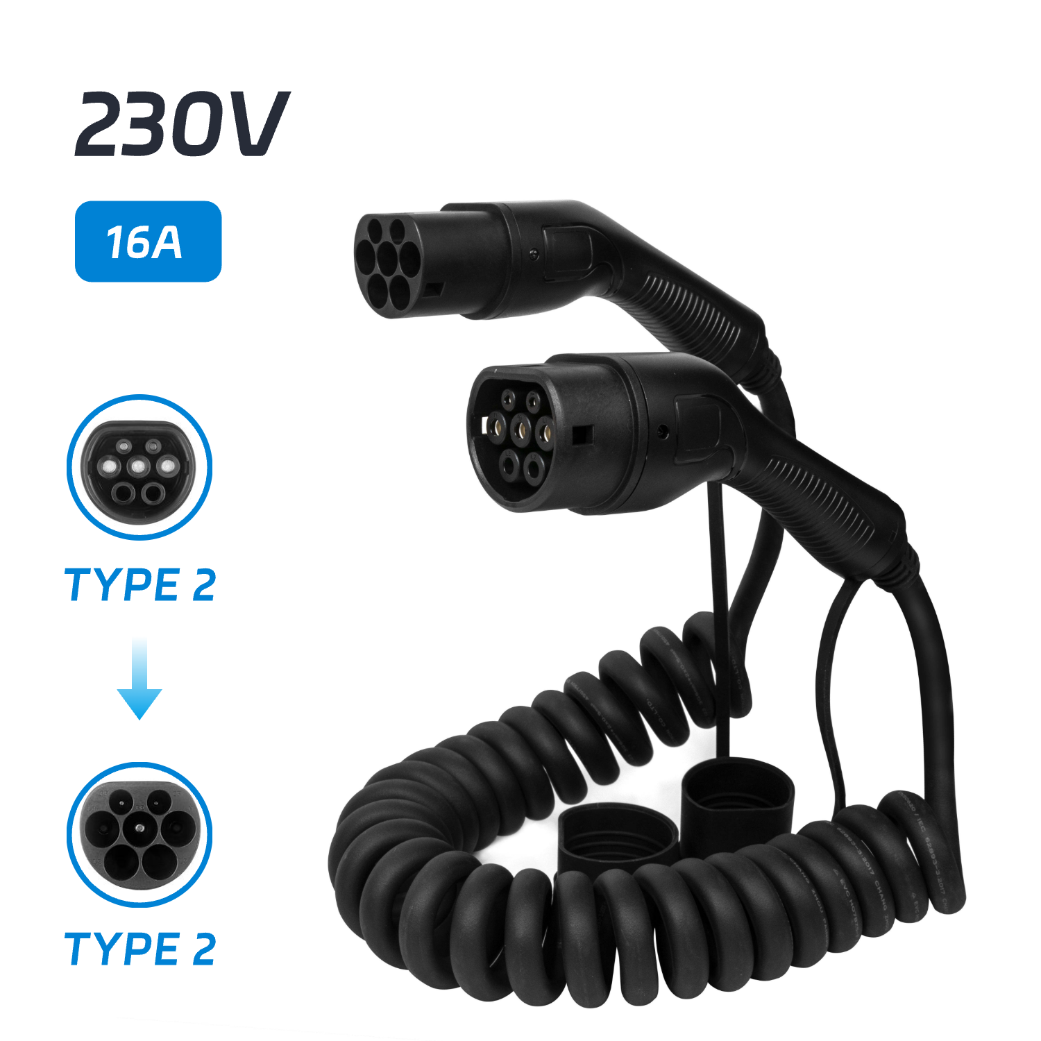 • Connectors: Type 2 (Male) to Type 2 (Female)